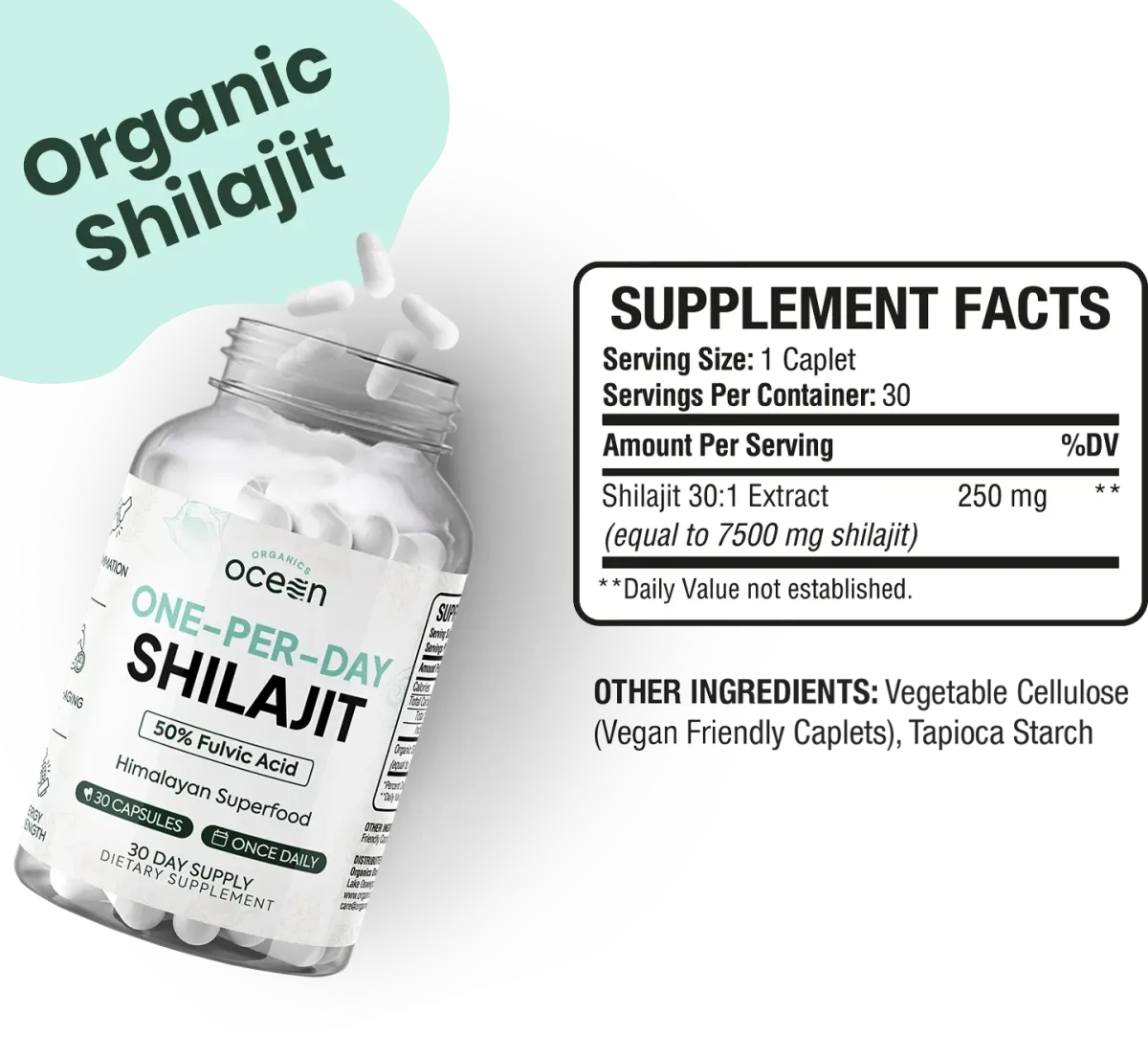 Our One-Per-Day Shilajit requires just 1 caplet daily. And delivers 30x's the potency of shilajit resin.
